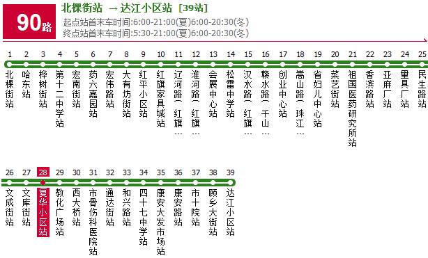 4、“復華小區”站,途經的公交線路: